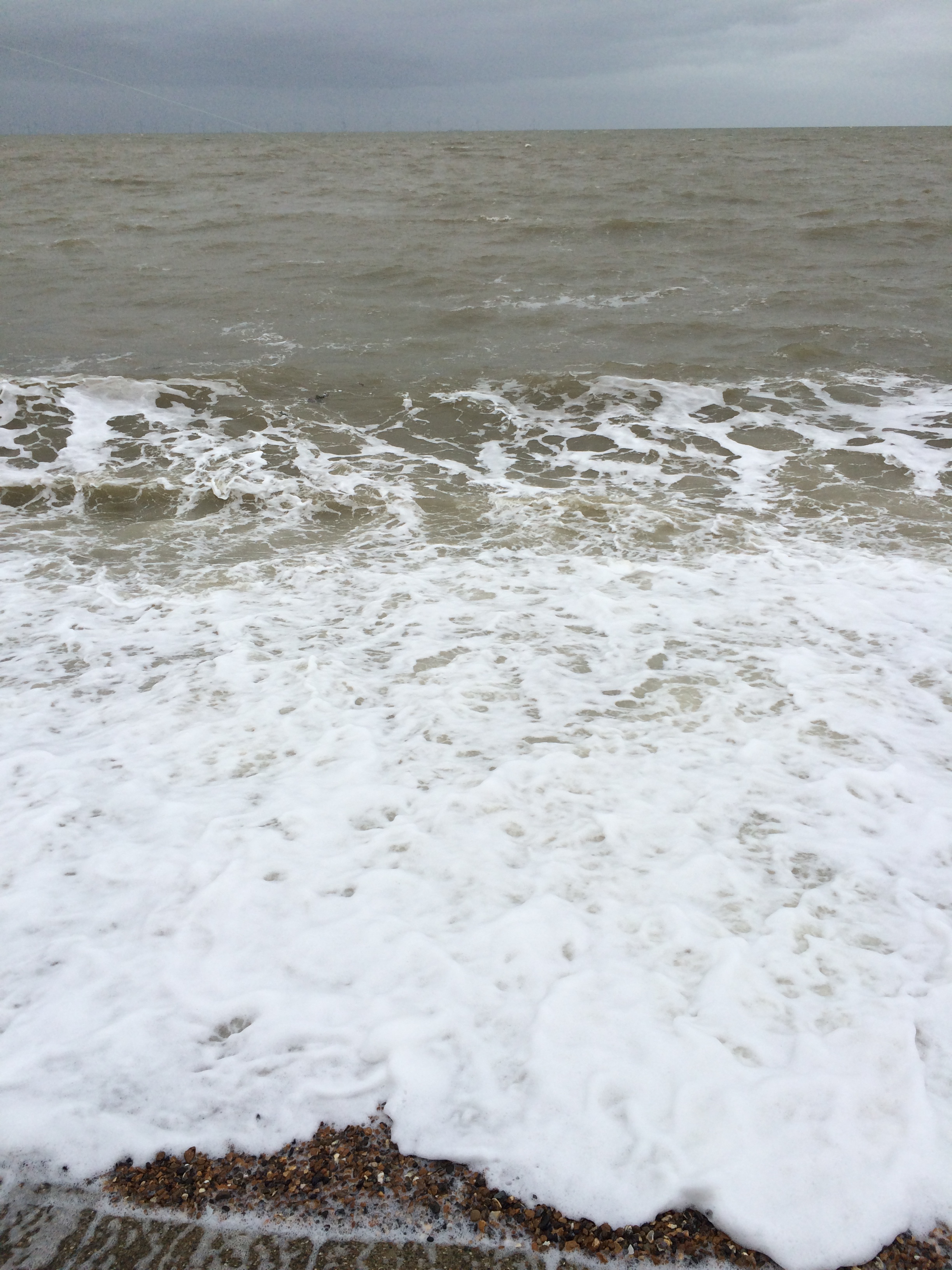 No one can stop the waves as they crash against the shore and grind the stones into fine sand. The water looks brown as the sand below gets mangled up in the water and the whole mass of matter is beaten and churned into sea soup…